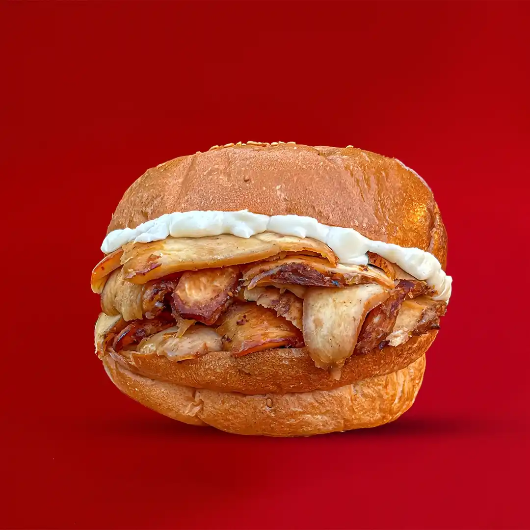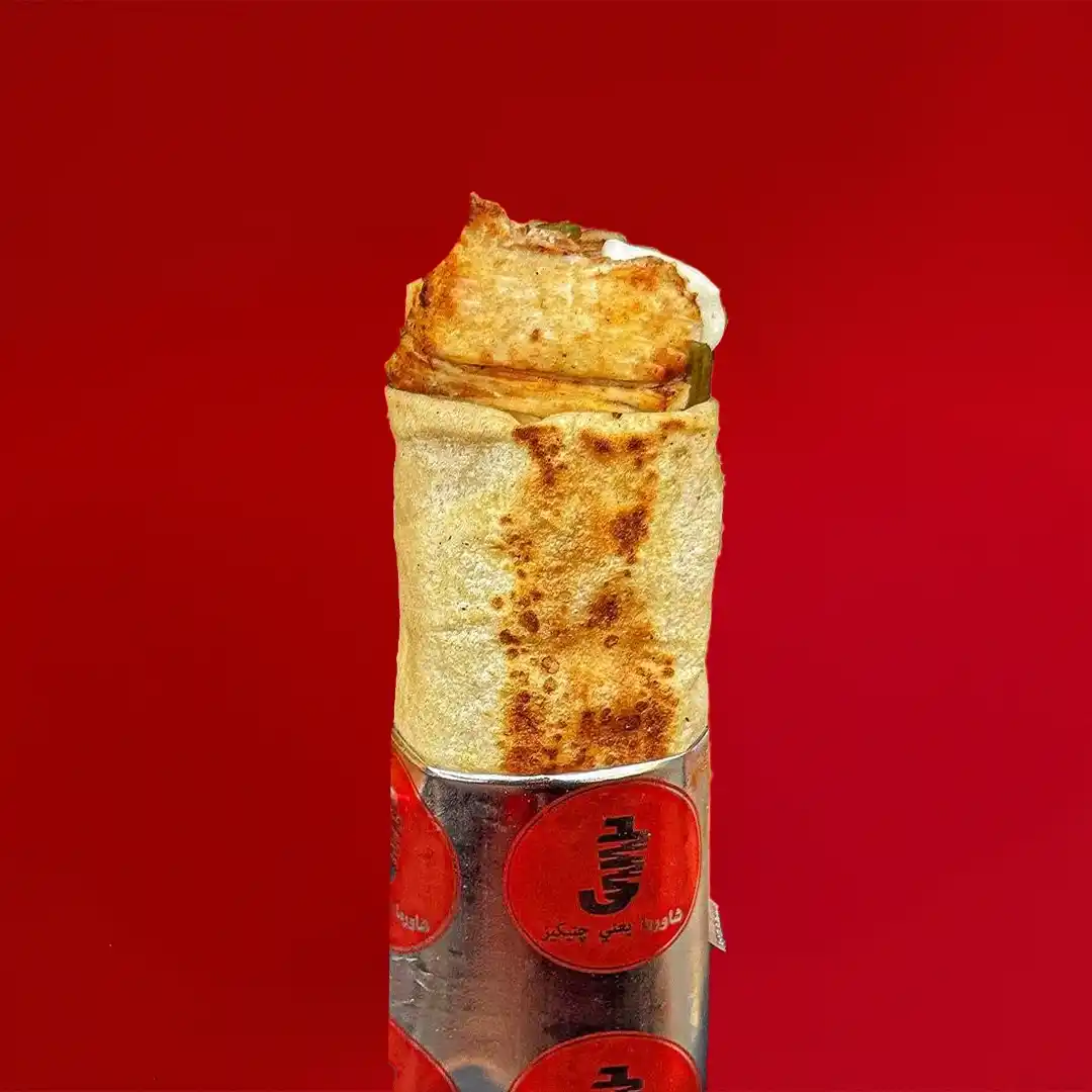 شاورما فراخ - بصل مكرمل - مشروم - جبنة - صوص رانش - خيار مخلل (فرنساوي)