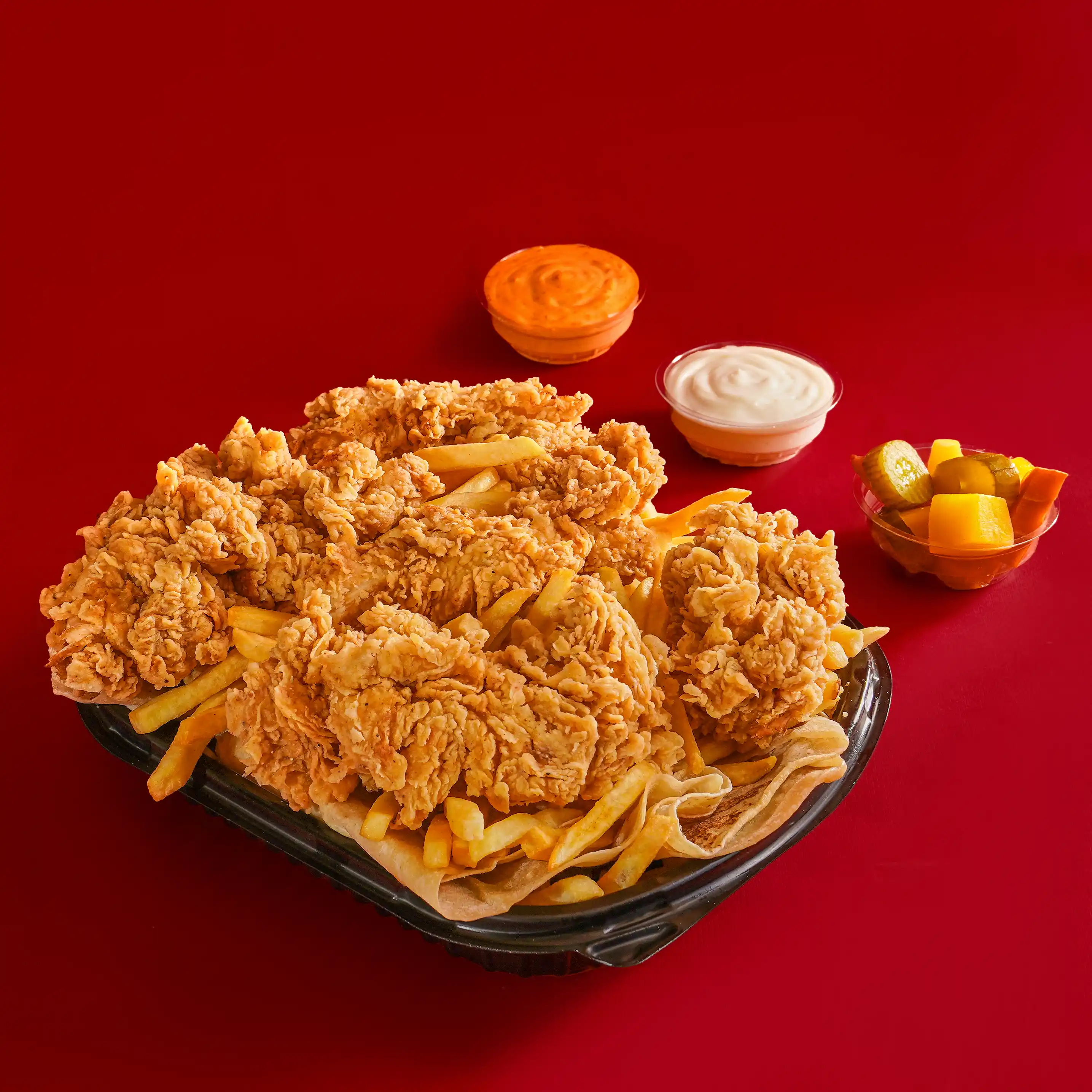 15 قطعة دجاج كريسبي+ بطاطس عائلي + ثومية + صوص سبايسي + مخلل + كولسلو